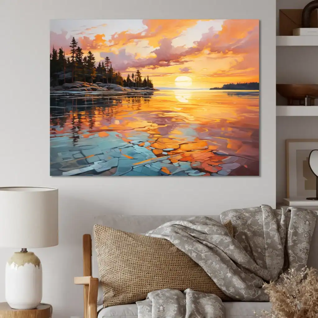 This made in Canada canvas print features a serene watercolor landscape with soft sunrise tones and calm reflections. It’s perfect for adding warmth to your living room, hallway, or office. Printed on premium cotton canvas with fade-resistant ink, it arrives ready to hang and comes in multiple frame styles and sizes.