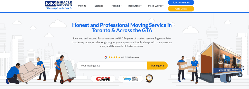 Miracle Movers is a highly reputable moving company serving Toronto and the Greater Toronto Area with additional offices in Calgary, Alberta and Surrey, British Columbia. With years of experience, Miracle Movers specialize in providing seamless and stress-free moving solutions for both residential and commercial clients.